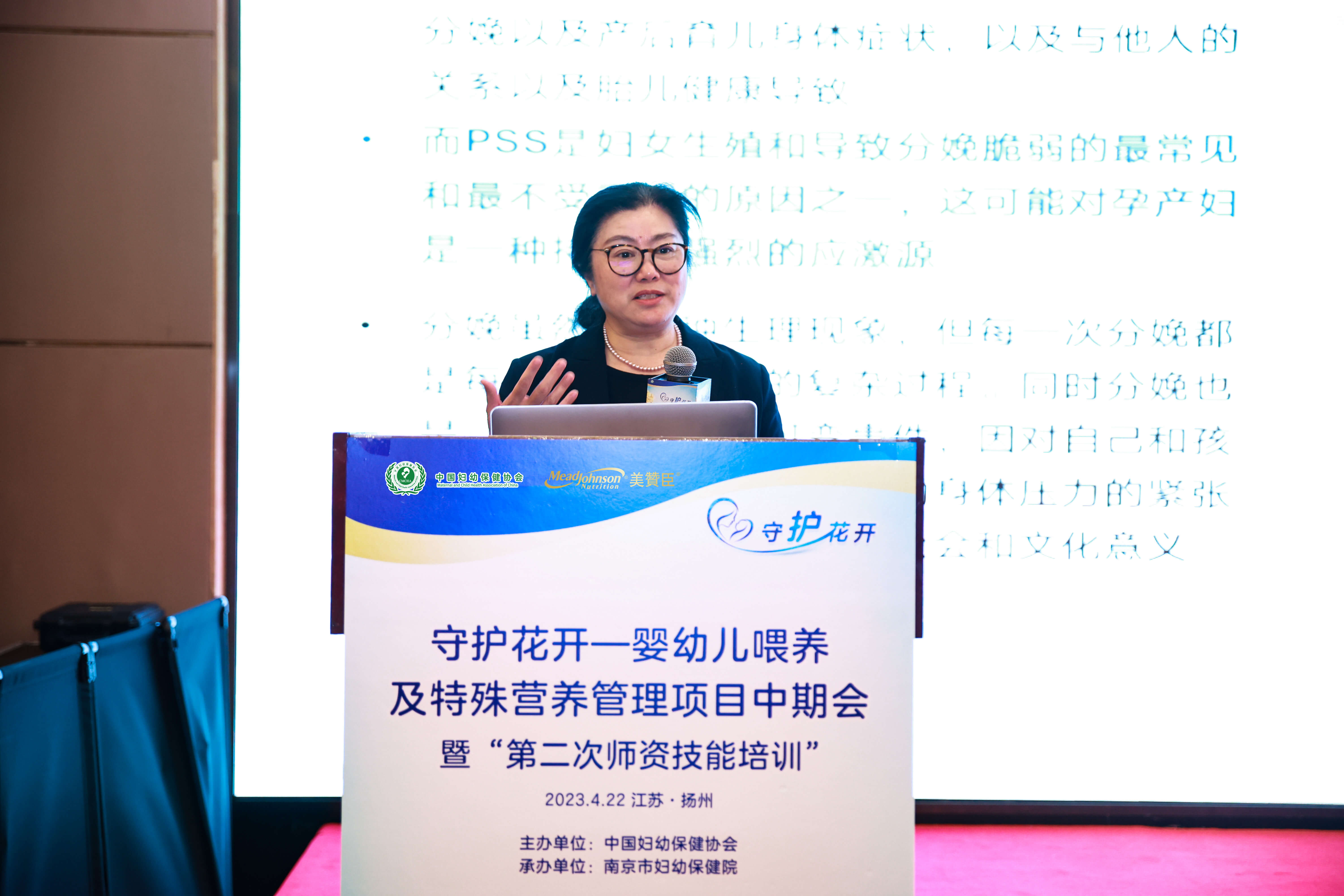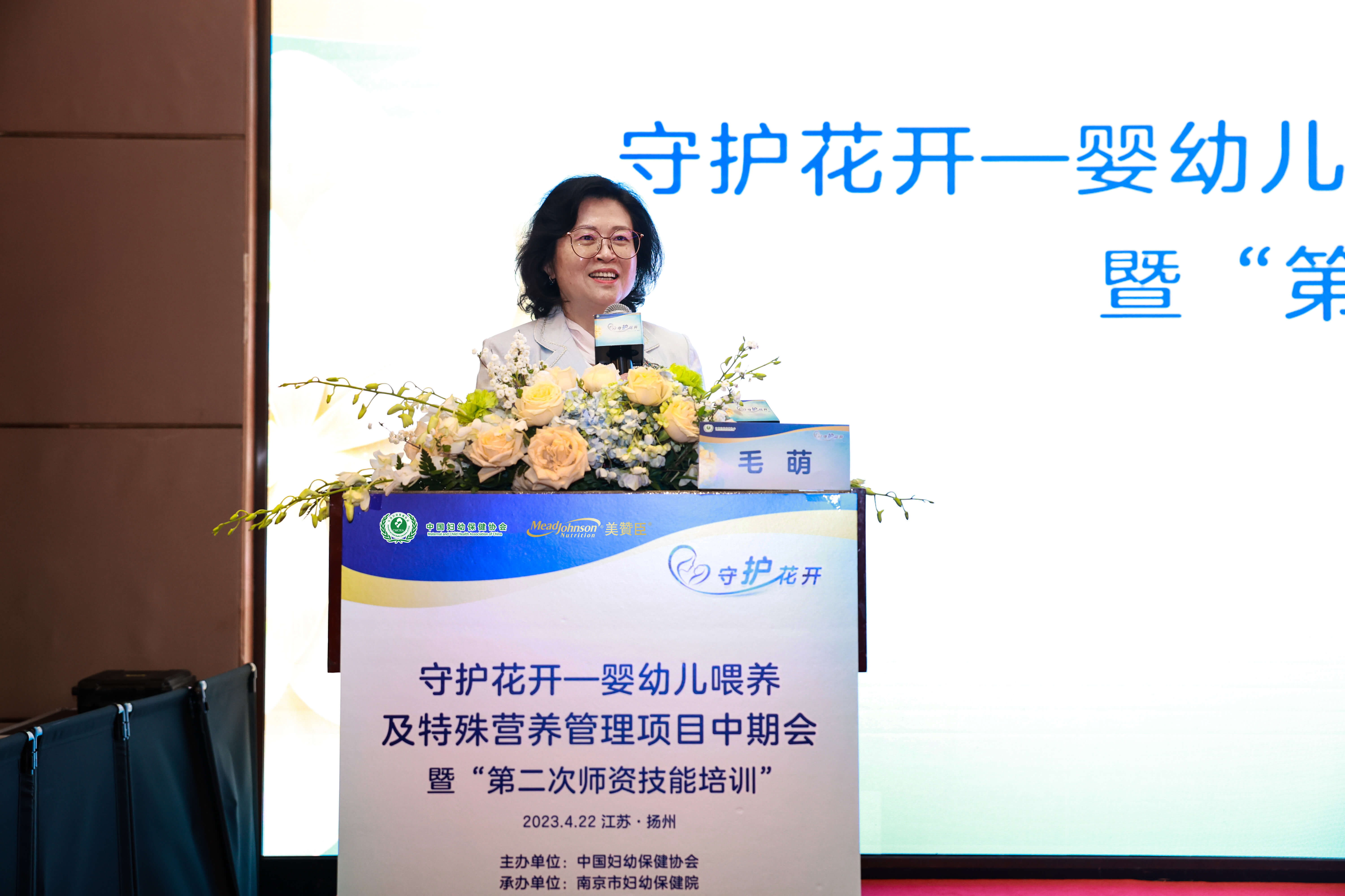 项目首席专家、长期工作在妇幼保健系统一线的毛萌教授从营养专业角度和切身工作体会分析了婴幼儿喂养问题的现状。她坦言,疾病谱在发生变化,早产儿并发症、功能性胃肠病、牛奶蛋白过敏等婴幼儿疾病的发病率在逐步提高,如何提高婴幼儿的健康水平是需要重点关注的。而婴幼儿喂养问题关联着母亲的精神压力,影响母亲身心健康,产后妈妈抑郁或焦虑发生比例高达10%-20%,积极管理年轻父母的心理情绪健康对母婴健康有重要作用。“守护花开”项目通过增强医护对婴幼儿病患的营养健康管理技能,对家长及婴幼儿病患,提供各种专业喂养指导意见和工具,从而提高婴幼儿喂养质量,减轻患有特殊疾病婴幼儿的喂养负担,具有重要意义。本次会议的师资队伍技能培训班将通过加强对妇幼人群心理健康的关注,促进妇幼心理健康领域迈上新台阶。